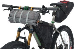 • Compression stuff sack with daisy-chain webbing system for multiple bike-frame attachment configurations