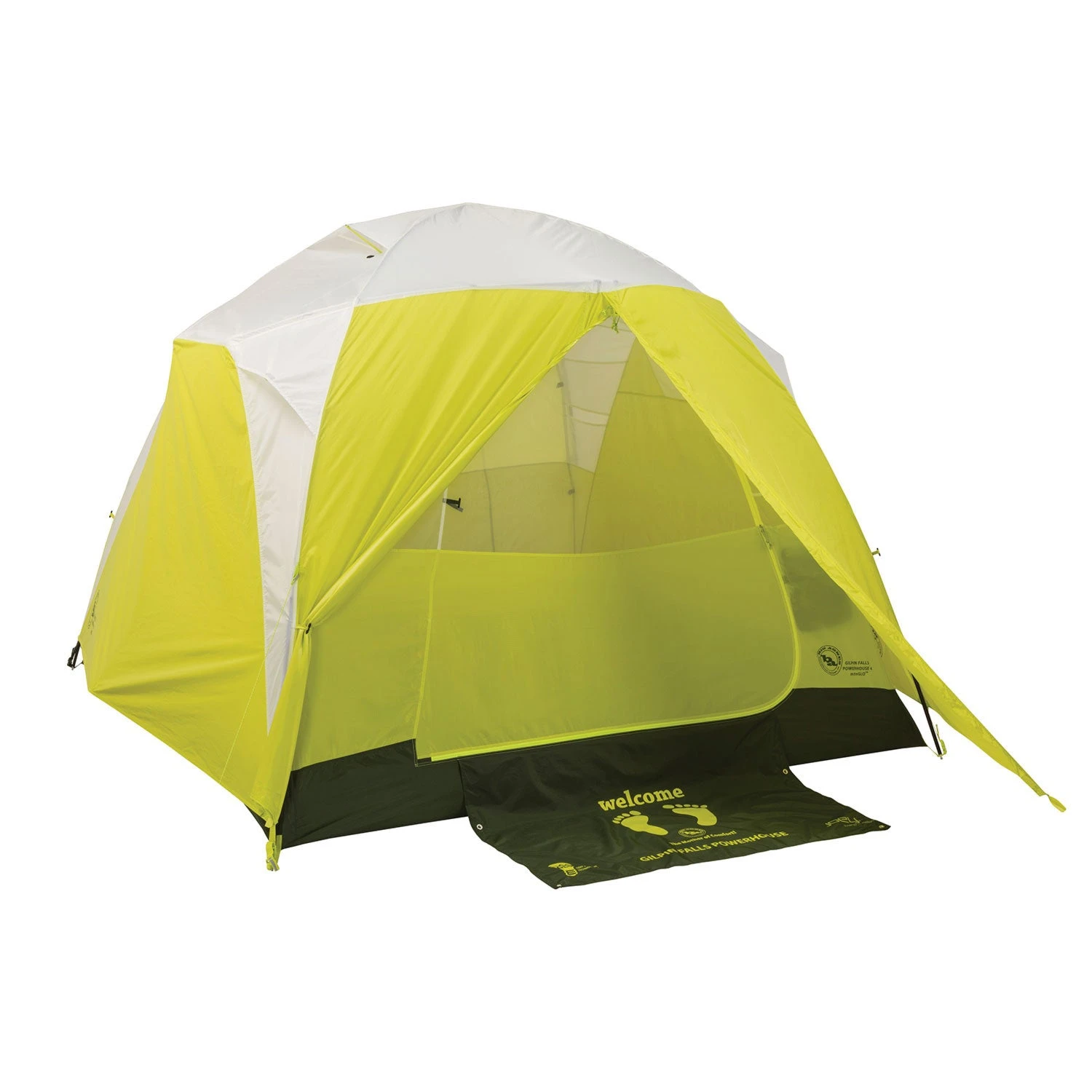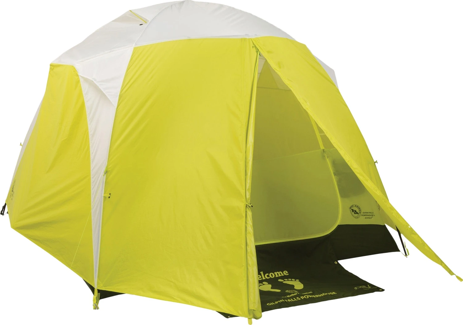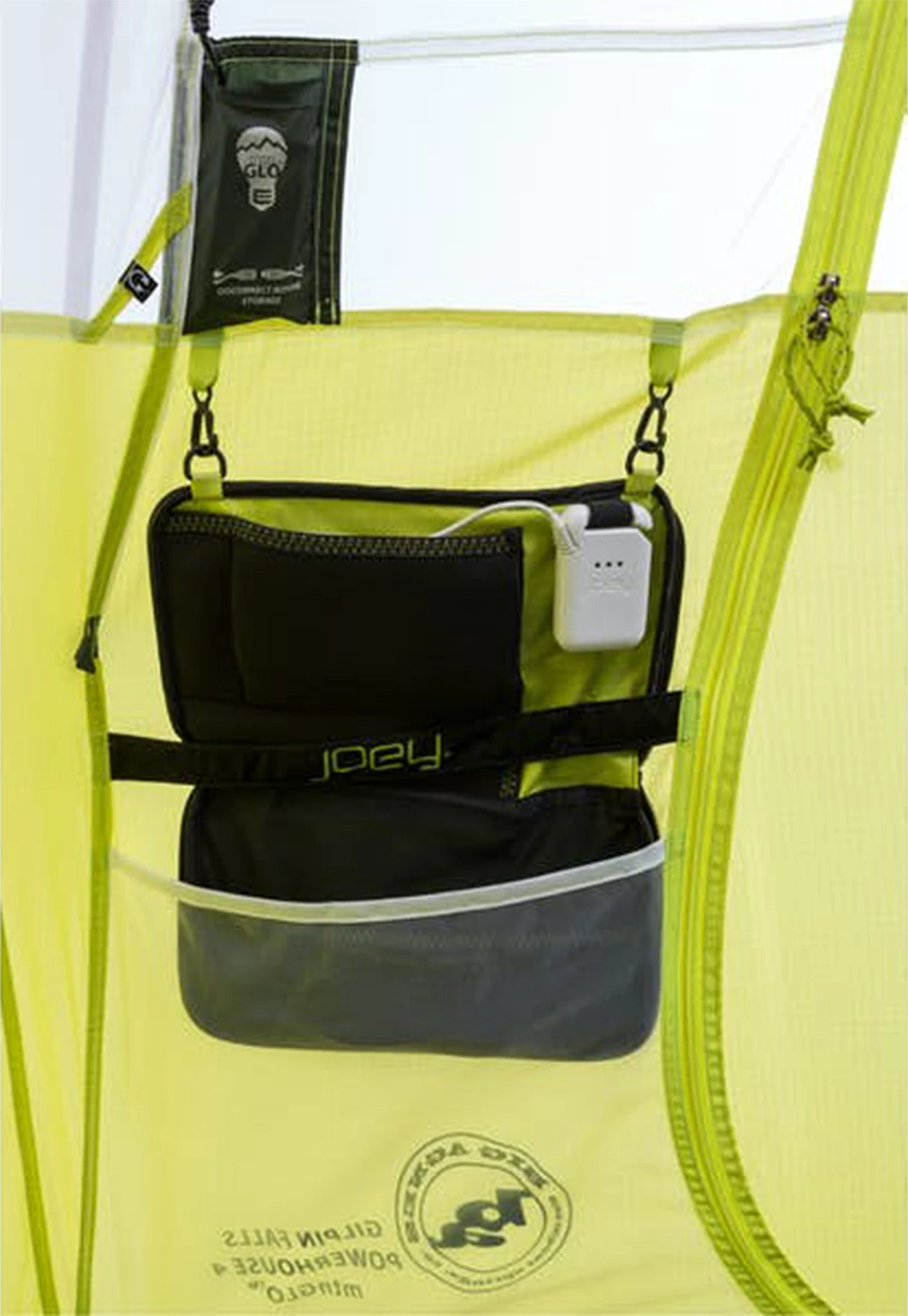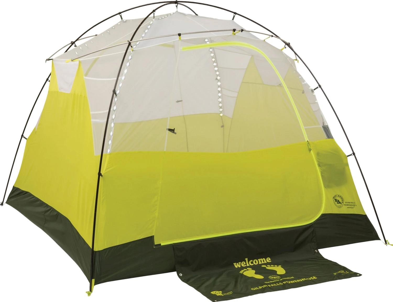 Part of the Big Agnes mtnGLO™ collection, light up your camp with the Gilpin Falls Powerhouse 4 mtnGLO™ camping tent. Illuminated with patent-pending mtnGLO™ Tent Light Technology featuring LED lights integrated into the tent body; experience ambient light in your shelter with the click of a button. Includes a Joey® T55 computerized power supply for lightweight, compact, and convenient charging.