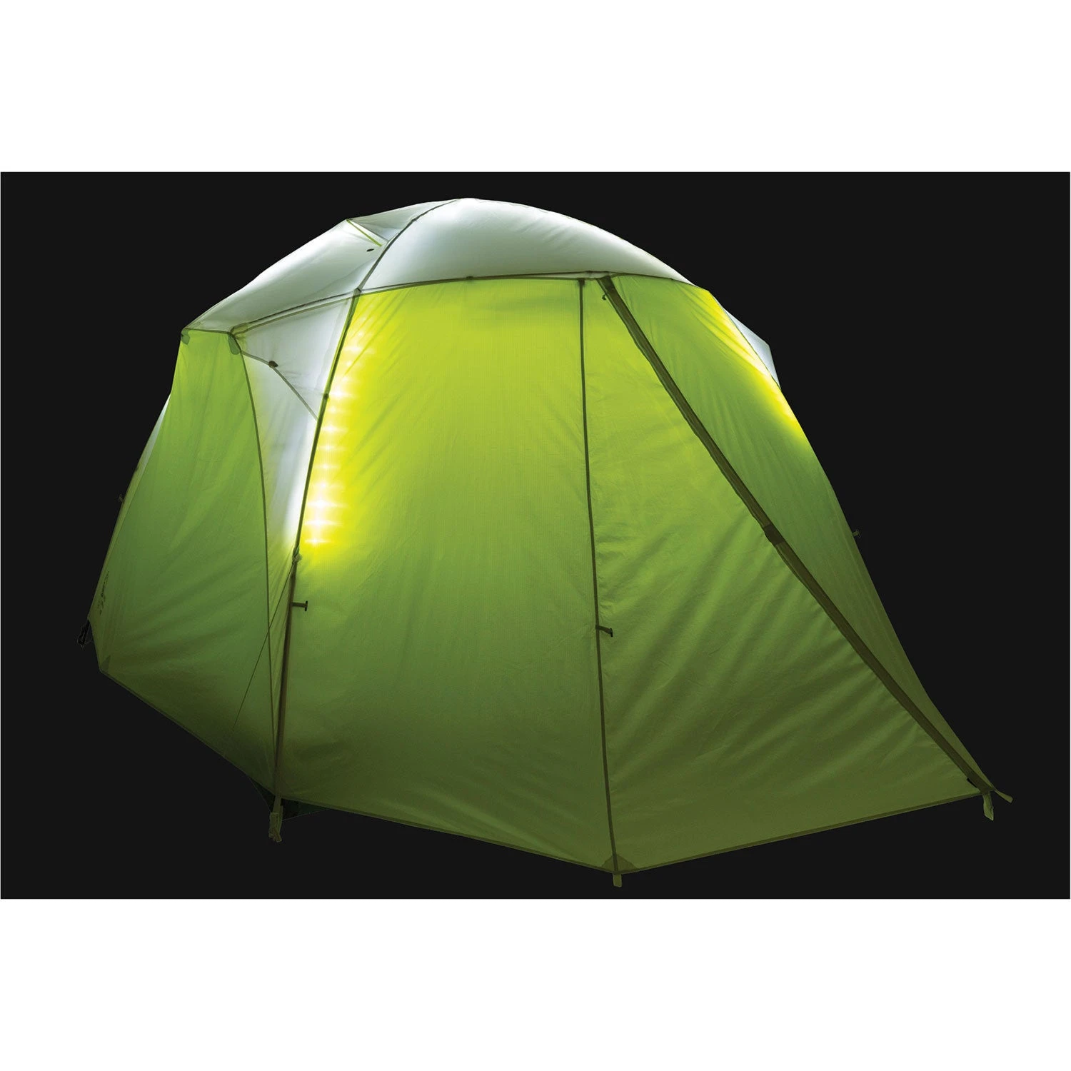 Features patent-pending mtnGLO™ tent light technology using durable LED lights to illuminate the interior of your tent with enough light to sort gear, play cards and hang out with friends without blinding them with a bright beam of light.A simple push button controller with three settings – on, off and 50% brightness – controls the mtnGLO™ lights. LED light strand is integrated into tent seams and is durable and flexible enough to withstand repeated tent pitching and stuffing. Requires three AAA batteries (not included) to operate the mtnGLO™ light controller
