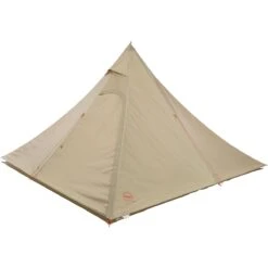 The Big Agnes Gold Camp 5 Tarp is a 3-season, pyramid-style shelter that sleeps up to 5 people with plenty of space. Its single-pole design allows for a quick and easy setup to save us energy after a long day on the trails and is easy to stow and travel with, thanks to its lightweight build. Its polyester taffeta construction is sturdy and durable, and also features a water-resistant polyurethane coating to keep us dry when the skies open up.