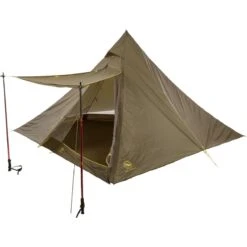 With its pyramid design and adjustable center pole, the Big Agnes Gold Camp UL 5 Tarp is a reliable, lightweight, and versatile shelter for up to 5 people and pets. We like it for traveling fast and light when we don’t have to worry too much about bugs or the weather. The shelter can be supported with the adjustable center pole or hung by the exterior peak loop. Adjustable stake-out loops make setup simple while the reflective guy-outs add stability and visibility. With a trail weight just under 3 pounds for 5 people, it’s a minimalist option that pitches fast and travels light.