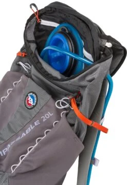 • Emplacement intérieur pour poche à eau 2L, avec crochet pour poche à eau, passage discret du tuyau et fixation pour tétine sur la sangle de poitrine