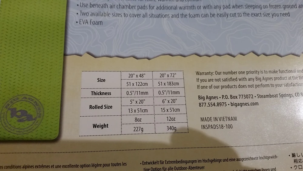 Big Agnes Third Degree Foam Pad