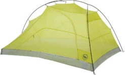 If you could snap your fingers and the lightest, most packable two-door tent of your dreams would appear before you, this would be it. Designed with the lightest-weight materials available; Easton® carbon pole set and Dyneema® Composite Fabrics – an extremely strong and dynamic fiber that is both highly tear resistant as well as fully waterproof. This tent is any ultralight-weight traveler’s dream. These products are intended for only the most advanced user. Although extremely strong for their weight, these tents are not indestructible and require careful use to decrease the possibility of damage. Special care during setup and extended trips is important as rough handling, long-term abrasion, exposure to sharp objects or rocky campsite selection may result in fabric punctures and tears. We highly recommend using tent footprints with these tents to improve durability. Self-adhesive repair patches are included in the event that repairs must be made on the trail.