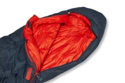 Sac de couchage en duvet avec panneaux extensibles pour un ajustement précis et un confort accru.
