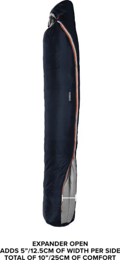 • Expanded comfort with two zippered panels, running from shoulder to footbox, adding five extra inches of room to each side – 10″ total when completely expanded