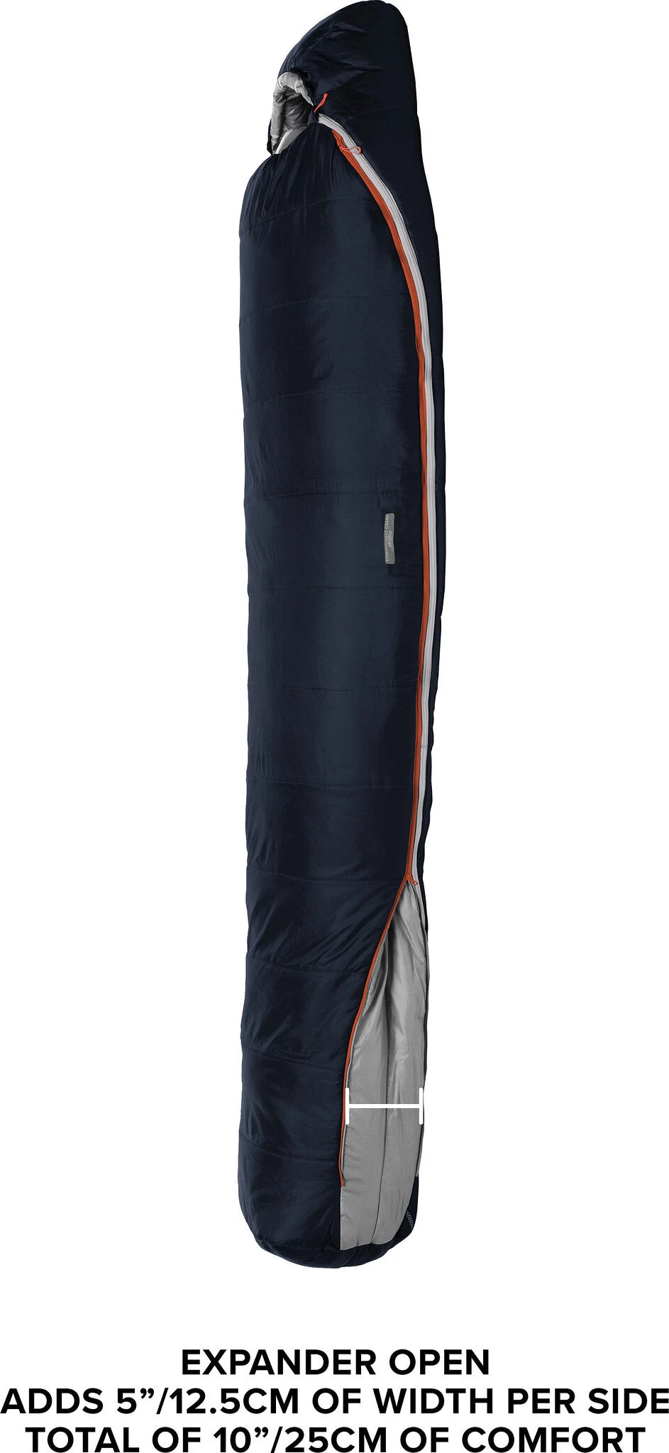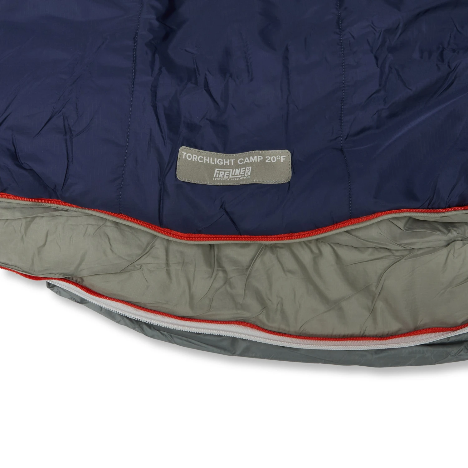 Expand your comfort zone in the NEW Torchlight Camp Series. Featuring two expandable panels from shoulders to footbox, this bag increases sleep space up to 10 extra inches! Depending on your sleep style and body shape, you can adjust the bag for customized comfort throughout the night. This bag is insulated with Fireline™ Pro Synthetic Insulation to efficiently trap and distribute heat with zero heat loss, even when the bag is expanded. The silky fibers provide a soft feel, high loft and great compression for packability, perfect for packing up for a comfortable, customized sleep experience at camp.