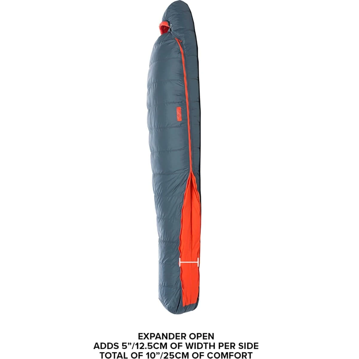 The Big Agnes Torchlight collection consists of unique, expandable sleeping bags, and the Torchlight 30 Sleeping Bag is the best option for 3-season camping and the occasional backpacking trip. Dual zippers allow you to expand the bag by about five inches to accommodate different clothes for different conditions. Slide the zippers down for extra room when you’re wearing insulators, or if you simply want more room, and slide them back up to keep you snug in summer clothing. Big Agnes treated the bag’s down insulation with DownTek to retain its lofty warmth in wetter climates, and the shell is water-resistant for extra weather protection.